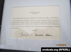 Юбіляр атрымаў віншаваньне зь Белага Дому ад прэзыдэнта Барака Абамы і спадарыні Мішэль Абамы.