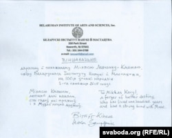 Управа Беларускага інстытута навукі й мастацтва, сябрам якога на працягу доўгіх гадоў быў Міхась Кавыль, перадала яму і ягоным сынам і ўнукам разам з віншаваньнем копіі старонак з англамоўнае гісторыі беларускай замежнай літаратуры брытанскага прафэсара Арнольда Макміліна, на якіх аўтар апісвае літаратурныя творы Міхася Кавыля.