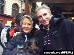 «Але мы абавязкова прачытаем яе кнігі. Газэты пісалі, што беларускі рэжым ня надта прыязна ставіцца да яе. Але, магчыма, сярод людзей яна больш папулярная.Мы ведаем Беларусь па вашым прэзыдэнце, па хакеі. І прэзыдэнт ваш хакеіст. Ведаем, што гэта ня надта свабодная краіна», — пры фатаграфаваньні Брыгіта і Кляўс удакладняюць, што іхнага сабачку зваць Чэсьцер, што важна, бо ён таксама будзе на фота.