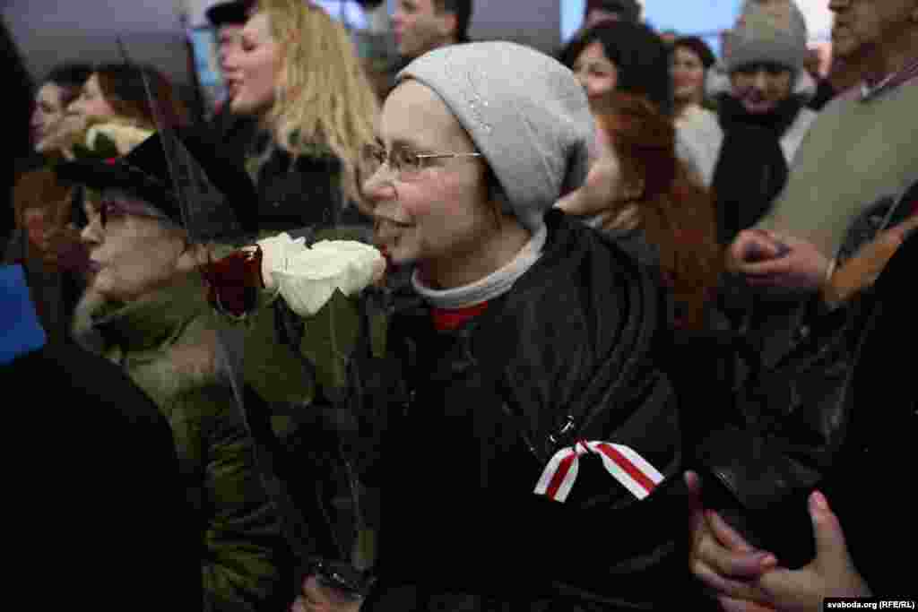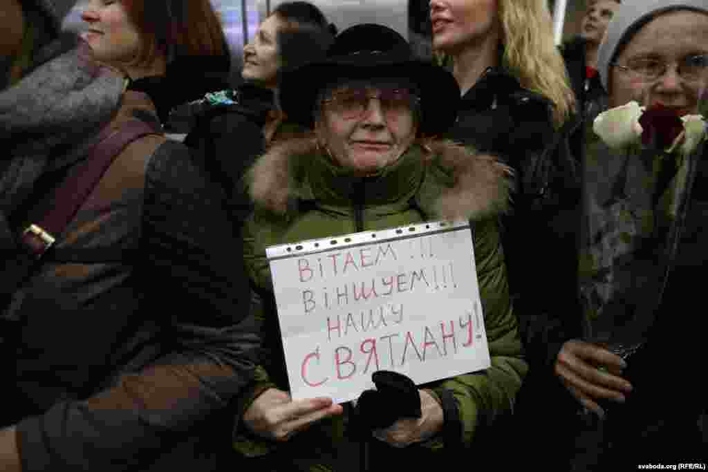Сярод прысутных былі прадстаўнікі палітычных і грамадзкіх арганізацыяў, шмат журналістаў. Афіцыйны бок праігнараваў прылёт нобэлеўскай ляўрэаткі – не было ані прадстаўнікоў уладаў, ані карэспандэнтаў дзяржаўных СМІ.
