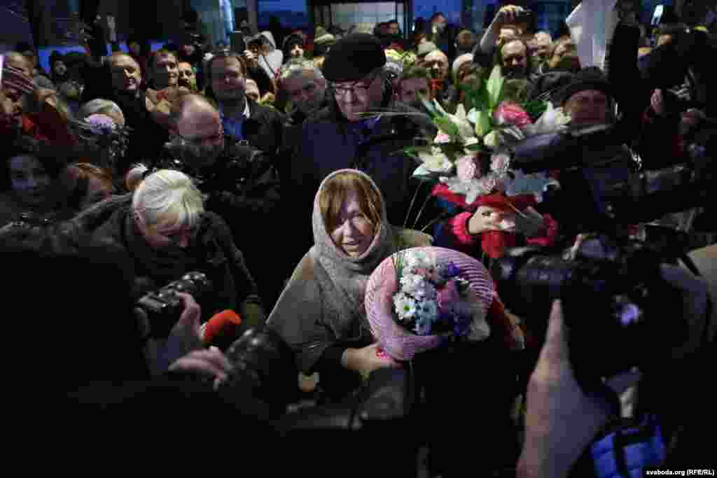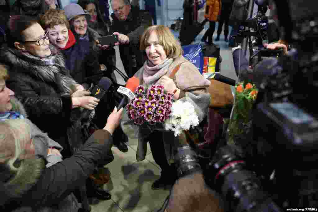 Як сустракалі Сьвятлану Алексіевіч у менскім аэрапорце
