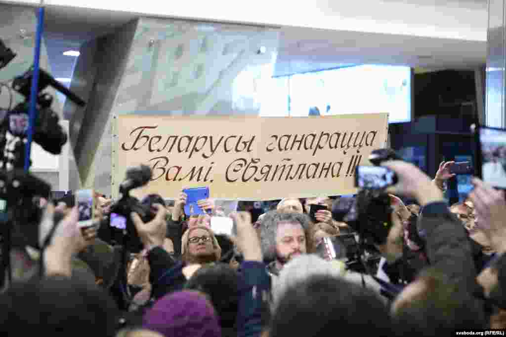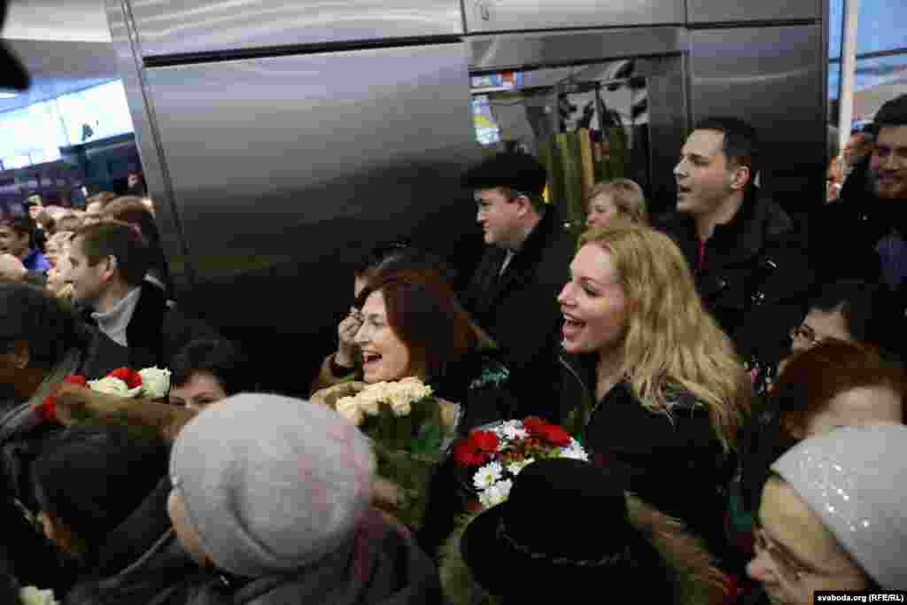 «Такога ніколі не было – каб так цёпла віталі людзі і цалкам ігнаравала дзяржава», сказала расчуленая пісьменьніца пасьля выхаду з залі прылётаў.