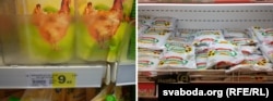 Каўбаса вараная каштуе 47 200 рублёў у Кіеве, у Менску — 52 200. Каўбаса вараная гатунку «Доктарская» ў Кіеве прадаецца за 65 640 рублёў, у Менску прадаюць за 50 900 — навагодняя зьніжка. Курыныя крылы: 23 100 у Кіеве, у Менску — 29 900. Украінская карэйка сьвіная каштуе 65 500, у Менску аналягічныя кавалкі мяса аддаюць за 78 900.