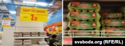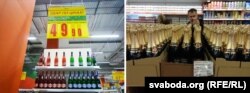 Францускі сыр тыпу «Камамбэр» у Кіеве прадаецца за 172 200, у Менску — 348 600. Паўлітровая банка згушчонкі ў Кіеве каштуе 12 500, у Менску рагачоўскі прадукт разьліты ў 380-грамовую тару і каштуе 14 500.