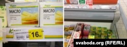 Сьмятана: мы ўзялі аб’ём 450 грам і 15-адсоткавую тлустасьць. У Кіеве цана складае 8 100, у Менску — 11 100. За літар малака аднолькавай тлустасьці трэба аддаць 7 000 у Кіеве і 9 200 — у Менску. Кавалак масла 73-працэнтнай тлустасьці ў Кіеве каштуе 13 000 (200 грам) і 17 500 (180 грам) у Менску.