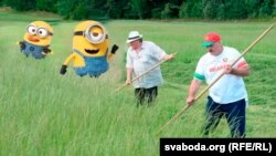 Француска-расейскі актор Жэрар Дэпардзьё раптоўна прыехаў у Беларусь. І Лукашэнка разам з сынам і міністрамі стаў касіць зь ім траву. Не пытайце, чаму. І так увесь байнэт пытаў, чыя ж гэтая фэрма, што на ёй косяць траву такія людзі.