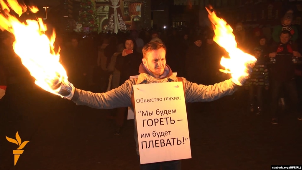 Міхаіл апрануў адмысловыя пальчаткі з гаручым рэчывам і падпаліў іх.