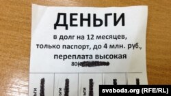 На слупах і дошках аб’яў зноў зьяўляюцца прапановы мікрапазык. Сумы прапаноўваюцца даволі невялікія (некалькі мільёнаў) і з высокай пераплатай. Пазваніўшы праз тэлефон на адной з абвестак, якія разьвешаныя ў раёне Камароўскага рынку, мы высьветлілі, што, узяўшы 4 мільёны рублёў на 12 месяцаў, трэба будзе выплочваць 900 тысяч штомесяц — гэта значыць, крэдыт выдаецца пад 270% гадавых.