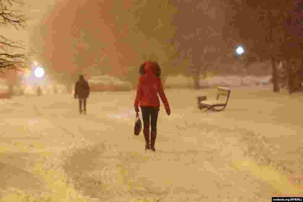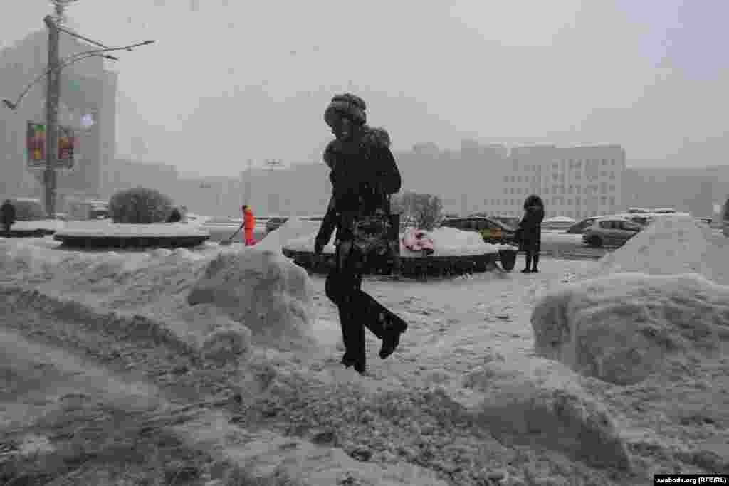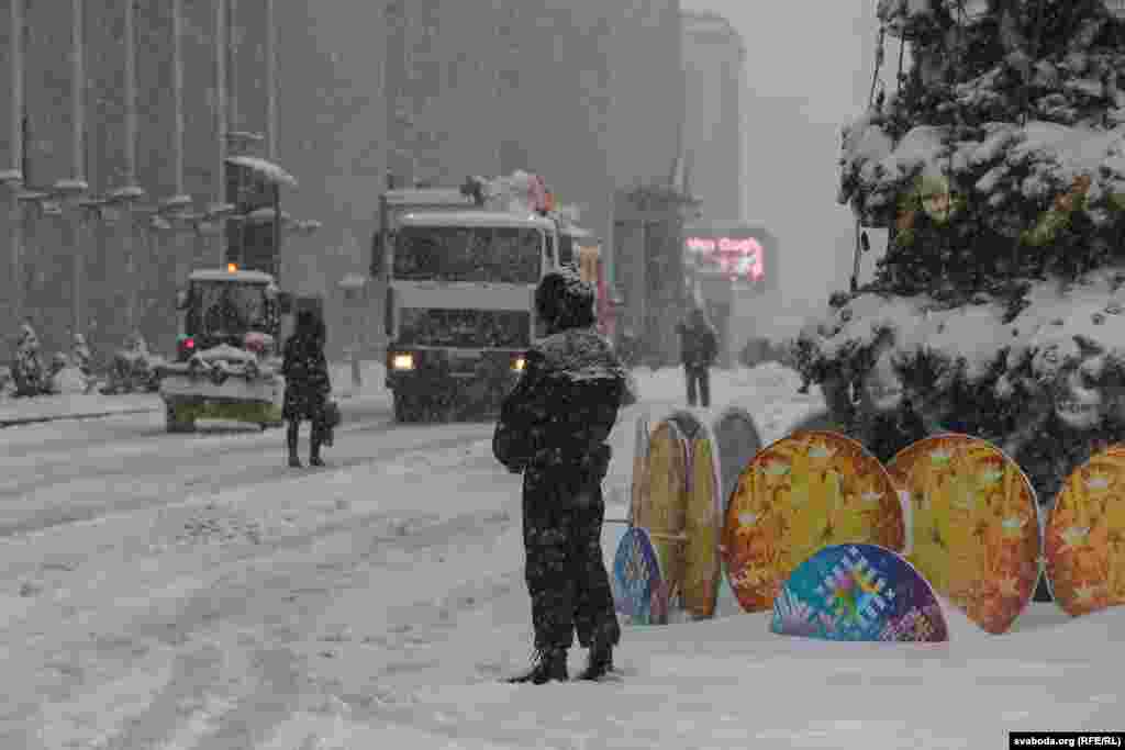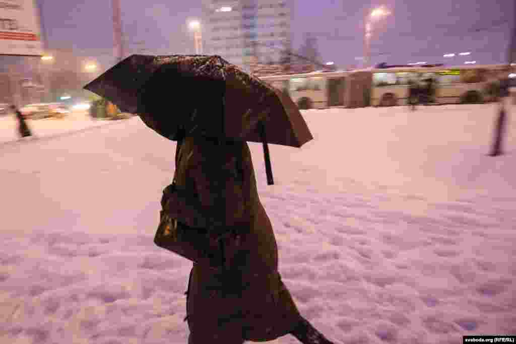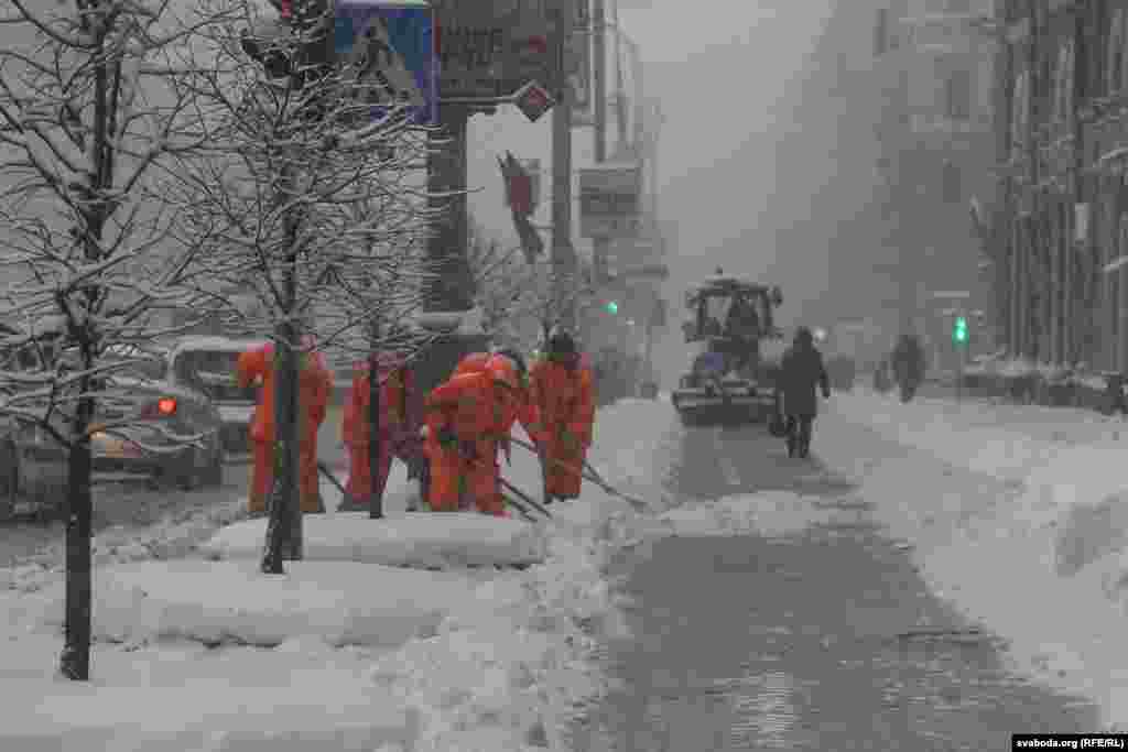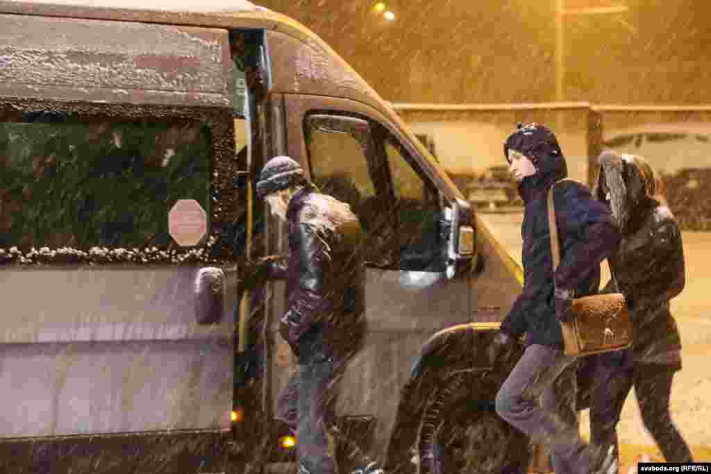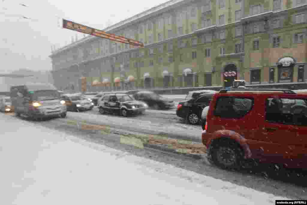 У Менску з-за сьнегападу транспарт стаіць у корках. Спэцтэхніка не спраўляецца з ачысткай дарог ад сьнегу. Людзі спазьняюцца на працу. Многія пасажыры выходзяць з аўтобусаў і тралейбусаў і ідуць пешкі.