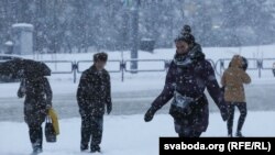 Моцны сьнегапад у Менску чакаецца да 21-й гадзіны, на поўдні Беларусі — сьнег з дажджом.
