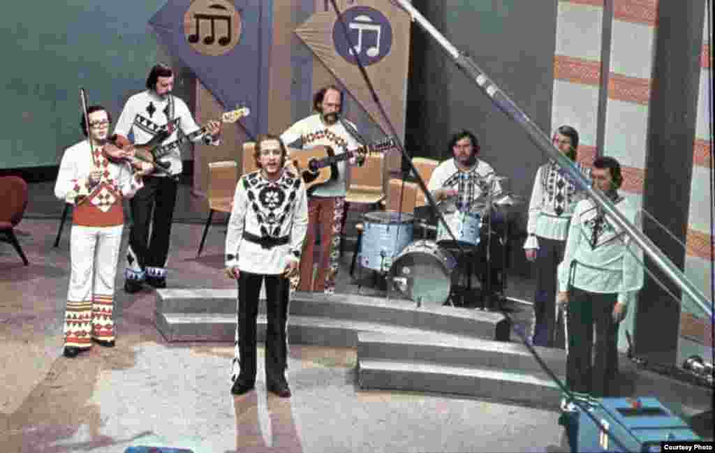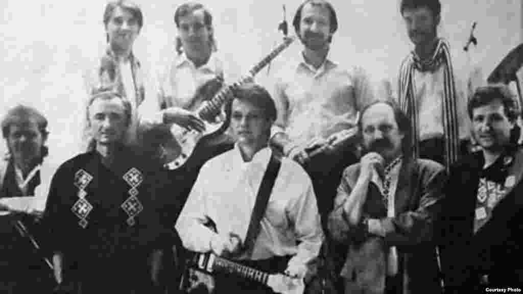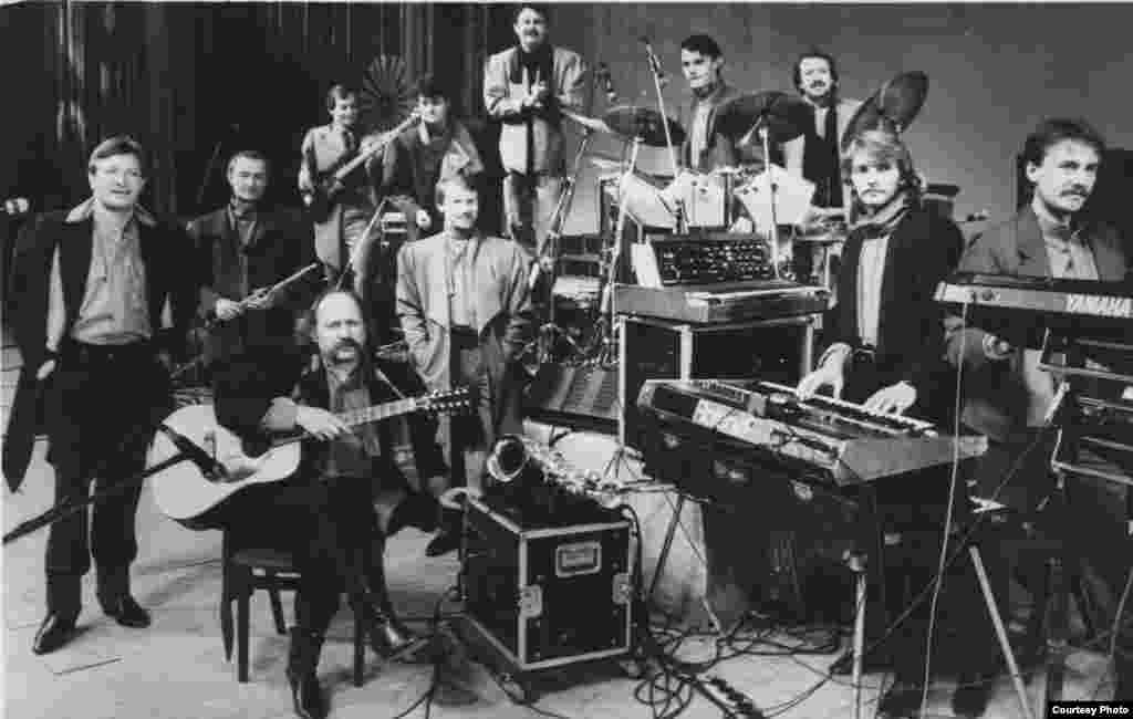 Гэты здымак «Песьняроў» з аўтографам Уладзімера Мулявіна захоўваўся ў архіве Ларысы Геніюш.