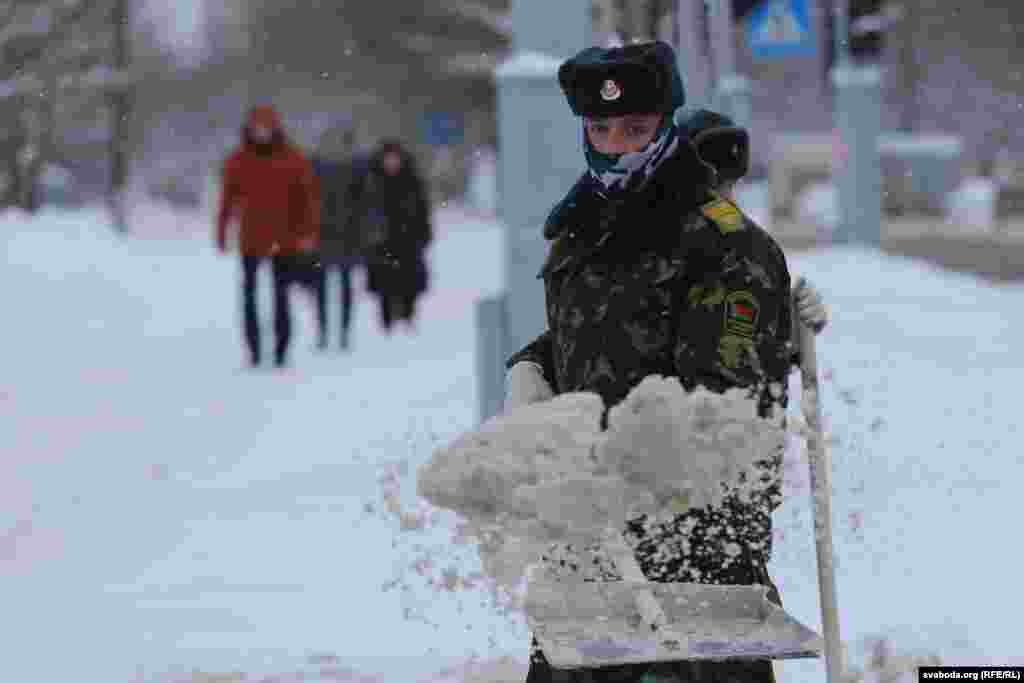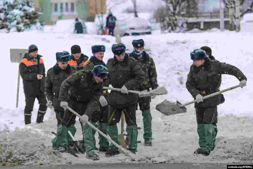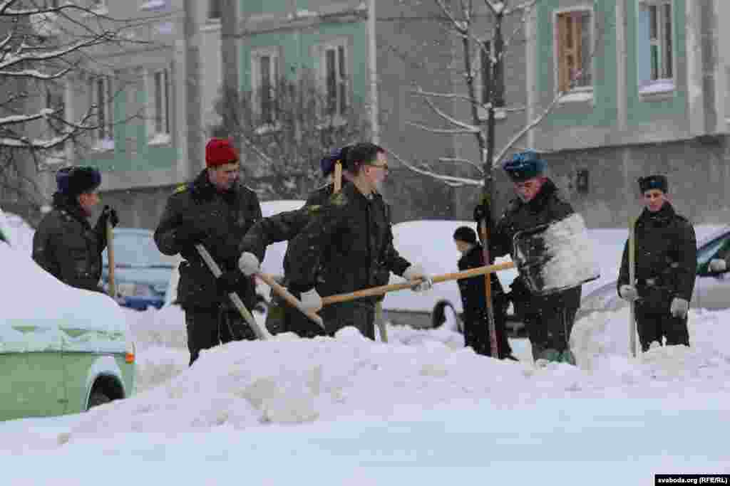 Курсанты Вайсковай акадэміі выйшлі на прыборку сьнегу
