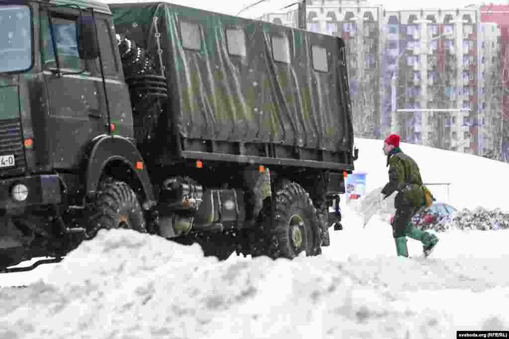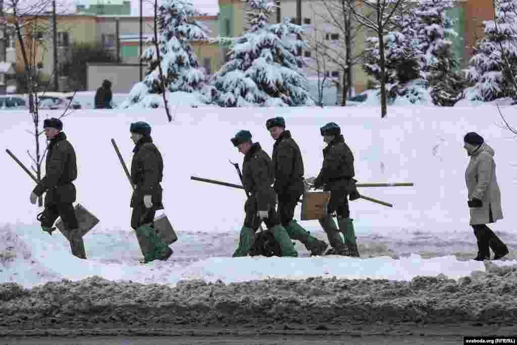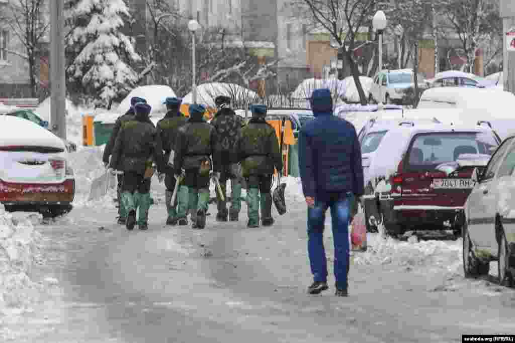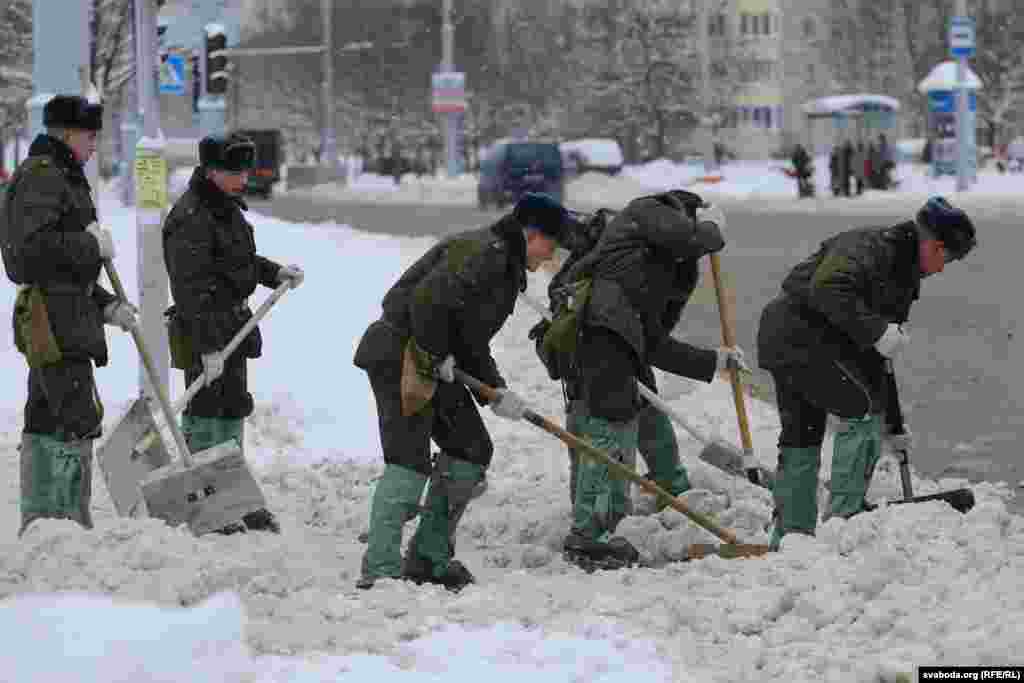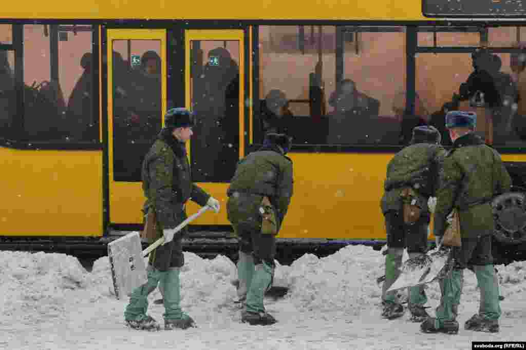 У Менску курсантаў Вайсковай акадэміі накіравалі на ўборку сьнегу пасьля ўчарашняга цыклёну «Даніэла».