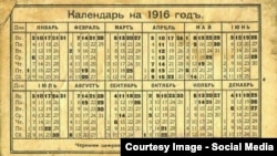 Такое здараецца, хоць і не занадта часта: каляндар 2016 году цалкам супаў з 1916-м — хоць вешай на сьценку пажоўклы каляндар стогадовай даўнасьці. Супадзеньне, вядома, умоўнае, улічваючы, што ў 1916 годзе ў Расеі яшчэ ўжываўся юліянскі каляндар, а не грыгарыянскі, як цяпер, і Новы год гэтая краіна сустракала ў ноч з 13 на 14 студзеня па «новым» стылі.