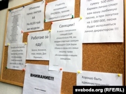 На дошцы аб’яваў вісіць і такая: «У сувязі з увядзеньнем санкцыяў ЗША адносна РФ мы ўводзім санкцыі ў адказ. Прэзыдэнт ЗША Барак Абама і члены яго сям’і пазбаўленыя права абслугоўваньня ў нашай установе». Яшчэ адзін надпіс: «Хто ня выкінуў за сабой кубак, той Канчыта Вурст».