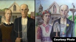 Малады беларускі мастак Дзьмітры Новікаў, які адбывае зьняволеньне ў адной зь беларускіх турмаў, апублікаваў сваю вэрсію «Амэрыканскай готыкі», дзе галоўныя героі адзетыя ў вышыванкі, з рыдлёўкай і бутэлькай.