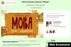 Праект настольнай гульні «Мова», распрацаваны аўтарамі «Паўстанцаў» супольна з курсамі «Мова нанова», падтрымалі 122 чалавекі, аднак сабраныя сродкі склалі толькі 52% ад патрэбнай сумы. А ўсё таму, што бонусы былі занадта шчодрыя: за ўнёсак у 100 тысяч можна было атрымаць гульню, якая цяпер каштуе 180 тысяч, і проста не было стымулу ахвяраваць больш. Балазе, аўтары гульні разьмясьцілі свой праект на «Талацэ», а не на «Вульлі», дзе праект, які не сабраў 100%, прызнаецца не пасьпяховым, а грошы вяртаюцца ахвярадаўцам. Праз стаўку на эканомію пры перадзамове гульні аўтары праекта пабачылі рэальную запатрабаванасьць беларускамоўных настолак і, будзем спадзявацца, у хуткім часе выпусьцяць новую, гэтым разам дзіцячую гульню «Гаспадар цмокаў».