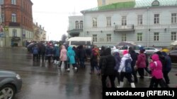 Прадстаўнікоў аблвыканкаму давялося чакаць — яны не пасьпелі даехаць, пакуль людзі ішлі.