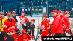 Напярэдадні фотакарэспандэнт Свабоды наведаў трэніроўку кандыдатаў у галоўную зборную ў сталічнай «Менск-Арэне».