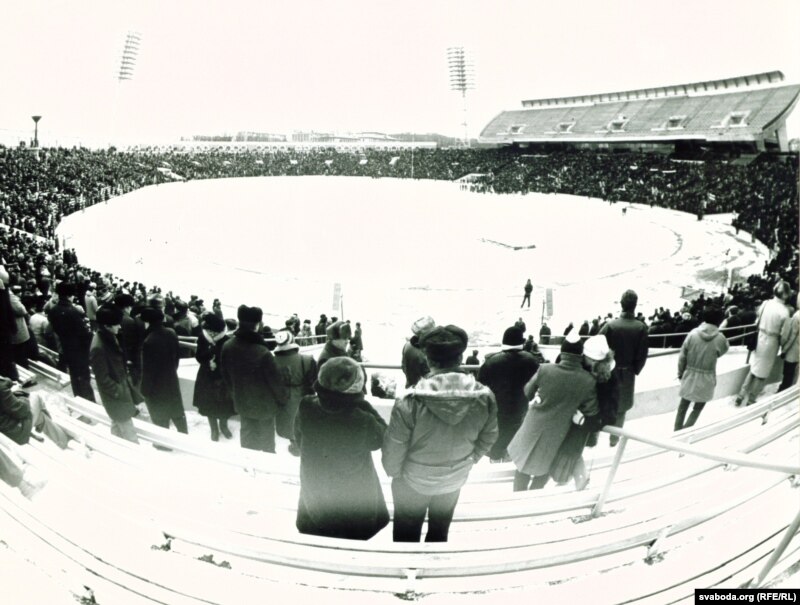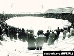 Выступ Зянона Пазьняка на мітынгу на стадыёне «Дынама». Менск, 1989 г.
