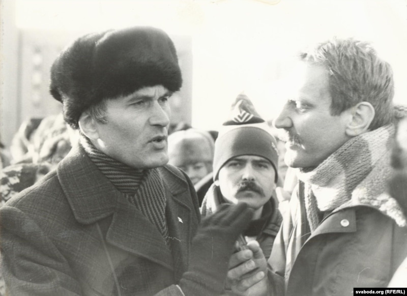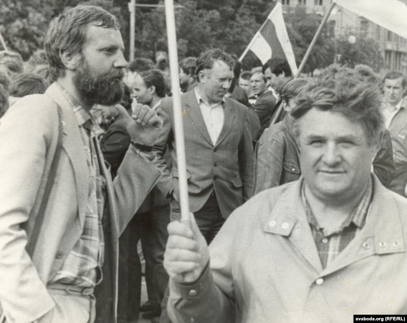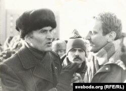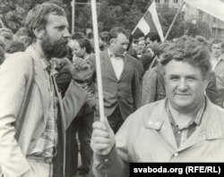 Валер Сядоў (зьлева) на адным зь мітынгаў БНФ.