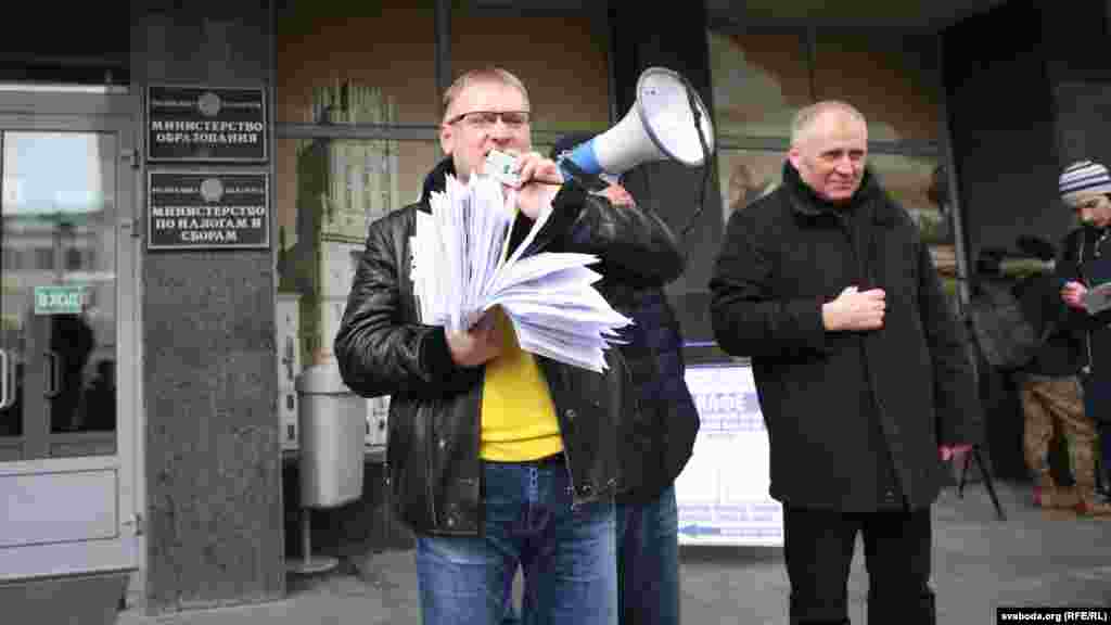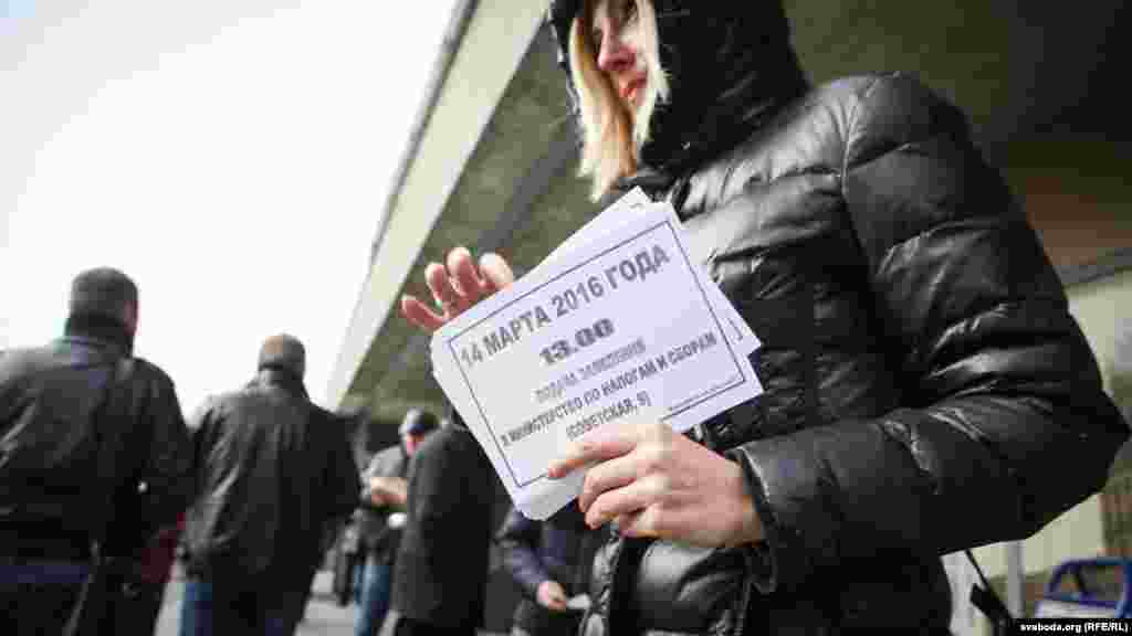 Старшыня грамадзкага аб’яднаньня «Пэрспэктыва» Анатоль Шумчанка і палітык Мікола Статкевіч заклікалі беларускіх індывідуальных прадпрымальнікаў адначасова масава падаць заявы з патрабаваньнем скасаваць указ № 222 у Міністэрства па падатках і зборах 14 сакавіка а 13-й гадзіне.
