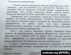 Анатоль Лябедзька, Мікалай Статкевіч, Вячаслаў Сіўчык і Аляксей Янукевіч былі сярод заяўнікаў правядзеньня мітынгу 25 сакавіка.