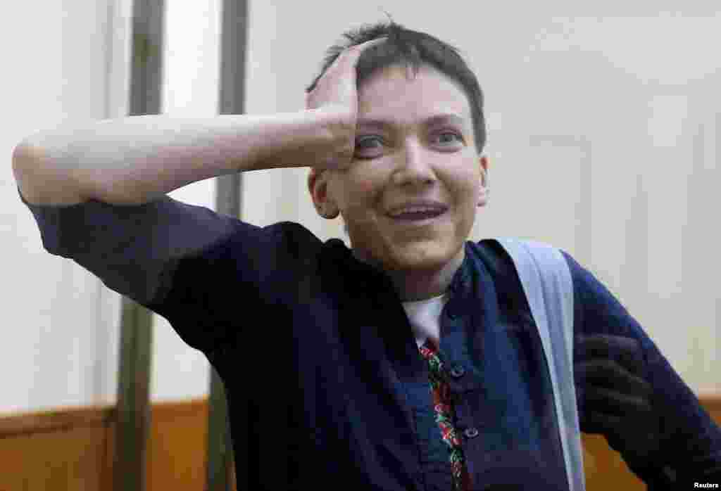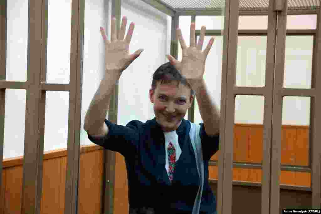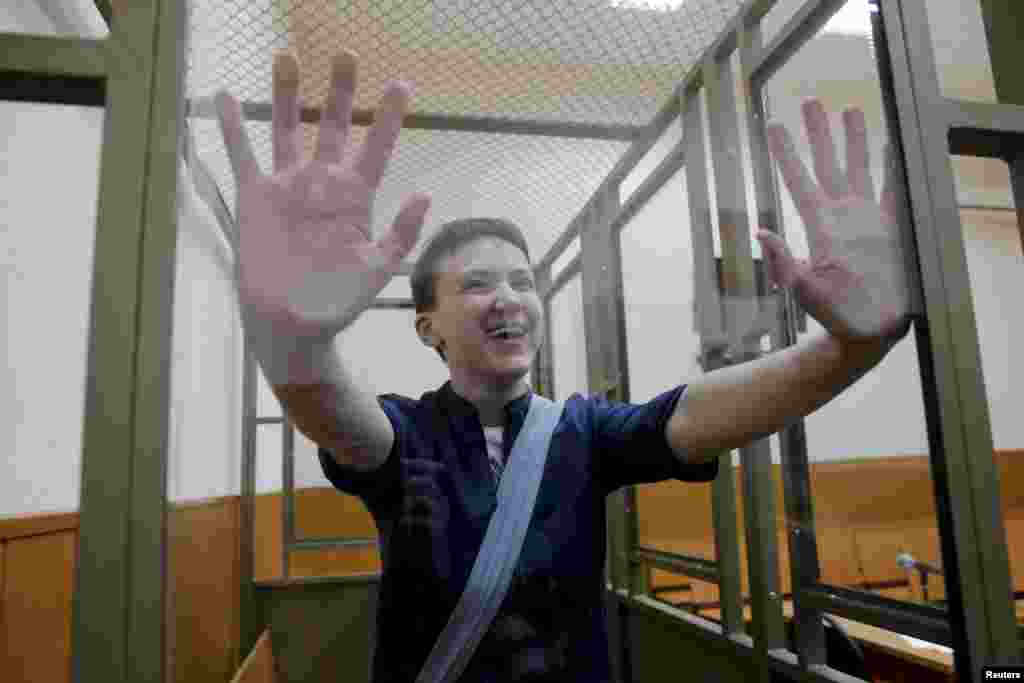 Абвяшчэньне прысуду ўкраінскай лётчыцы Надзеі Саўчанцы, якая абвінавачваецца ў нібыта датычнасьці да гібелі двух расейскіх журналістаў у 2014 годзе. Фотагалерэя.