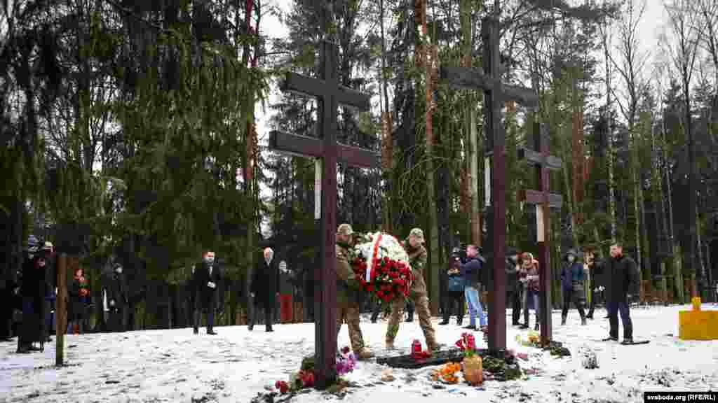 Вітальд Вашчыкоўскі, міністар замежных спраў Польшчы, усклаў вянкі ў Курапатах