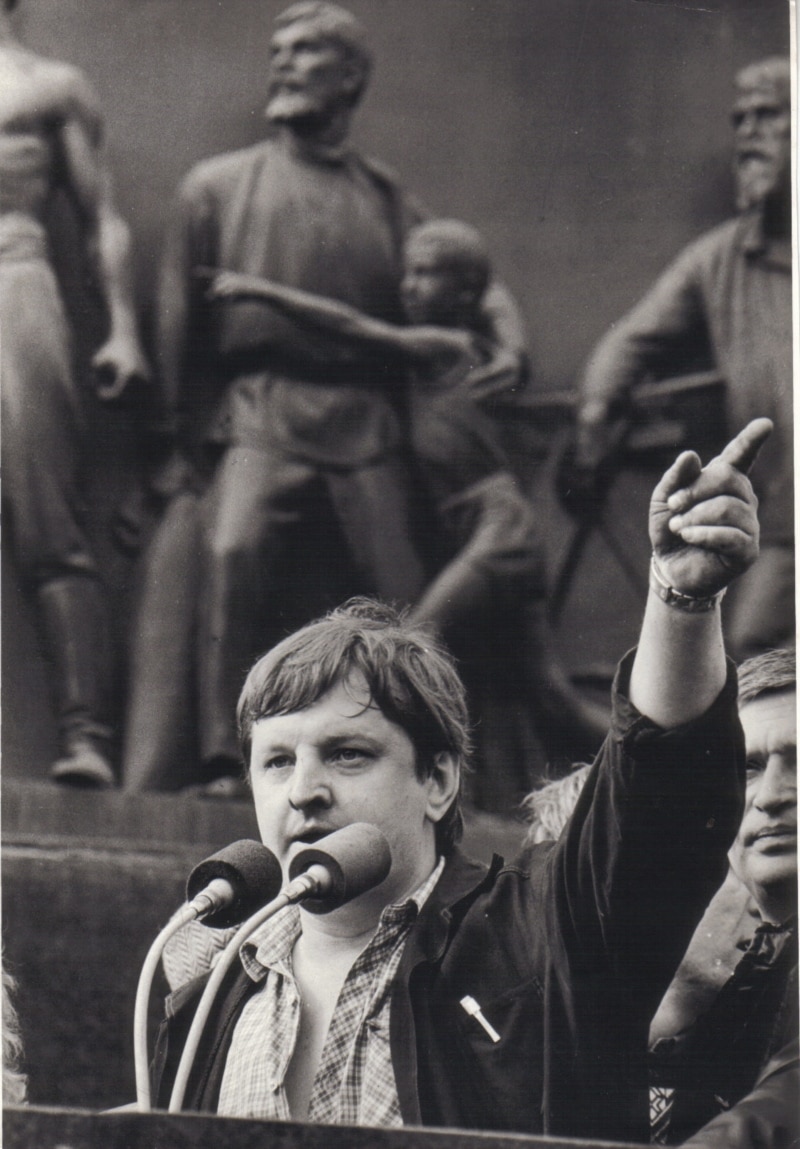 Праз год, на выбарах у Вярхоўны Савет БССР, калі ўжо не было акруговых сходаў, мне давялося шмат выступаць у цэхах віцебскіх станкабудаўнічых заводаў імя "Камінтэрну" і Кірава, у лякаматыўным дэпо, на іншых прадпрыемствах -- і асноўныя лёзунгі, зь якімі выступаў БНФ (дэкамунізацыя, дэпартызацыя, эканамічная самастойнасьць Беларусі, праўда пра Чарнобыль) -- падтрымліваліся рабочымі.