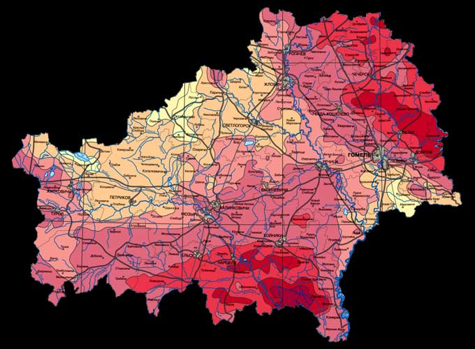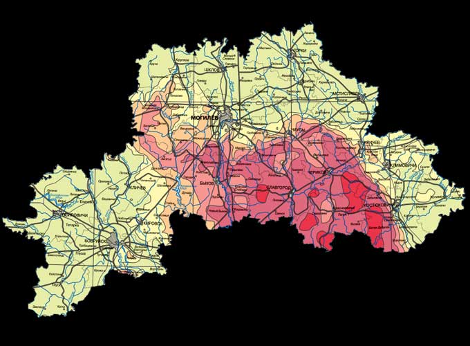 Забруджваньне цэзіем-137 закранула 66% плошчы краіны (звыш 130 тысячаў квадратных кілямэтраў).