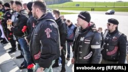 Сёньня ў Беларусь прыехалі ўдзельнікі мотамаршу «Дороги Победы — На Берлин!» з расейскага клюбу «Начныя ваўкі». Больш за паўсотні байкераў з прымацаванымі да матацыклаў савецкімі і расейскімі сьцягамі, а таксама пад гром песьні «Дзень Перамогі» з дынамікаў наведалі Курган Славы і мэмарыял у Хатыні, пасьля чаго рушылі ў напрамку польскай мяжы.