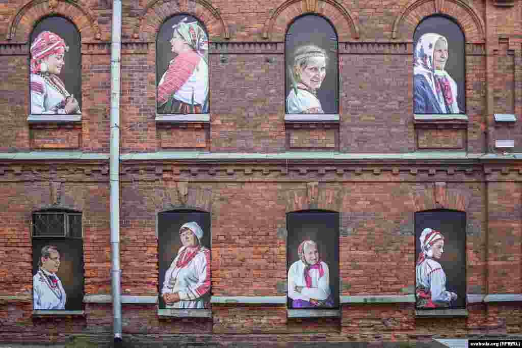 У цэнтры Менску фотаздымкі жанчын у нацыянальных строях
