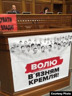 Пасьля гэтага яна зьняла з трыбуны плякат са сваім партрэтам і пры дапамозе дэпутатаў фракцыі «Бацькаўшчына» на ягонае месца замацавала іншы з надпісам «Волю вязьням Крамля!»