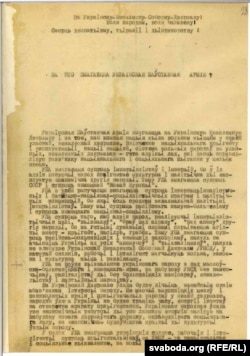 — Вядома, што ў 1943 годзе была выдадзеная ўлётка, ці нават брашура на некалькіх старонках, пад назвай «За што змагаецца Ўкраінская паўстанцкая армія». Яна была напісаная на беларускай мове і зьмяшчала кароткі выклад праграмных ідэй УПА.