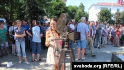 Плянавалася што помнік зьявіцца ў Бабруйску яшчэ год таму, але справа зацягнулася. Грошы на помнік ахвяравалі бабруйчанін Аляксандар Прэсьняцоў і ўжо амэрыканскія бабруйчане Генадзь Рабкін і Фэлікс Цупрун, скульптар Іван Данільчанка таксама мясцовы. На стадыі абмеркаваньня праектаў бабруйчанам спадабалася ідэя з папугаем на кінакамэры — у гонар «Папугая, які гаворыць на ідыш», дзяржаўная камісія зацьвердзіла варыянт з галубамі, які вызваў крытычныя камэнтары мясцовых жыхароў. У выніку — ані галубоў, ані папугая. Кінакамэра засталася, і адразу стала любімым аб’ектам для здымкаў.