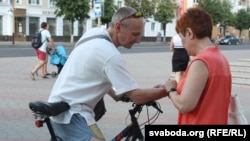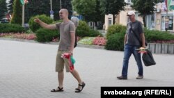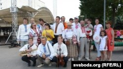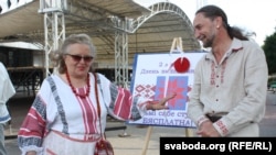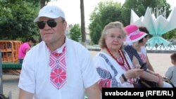 У нацыянальных строях прыйшлі людзі рознага ўзросту. Хто ня меў вышыванак, мог пачапіць на вопратку стужку.