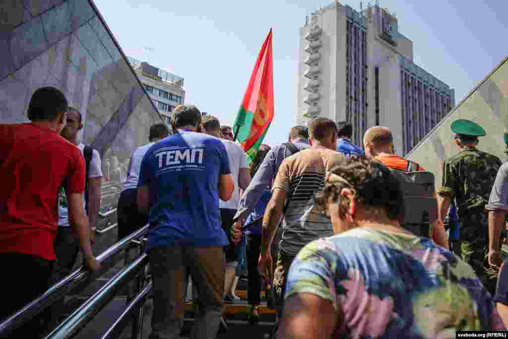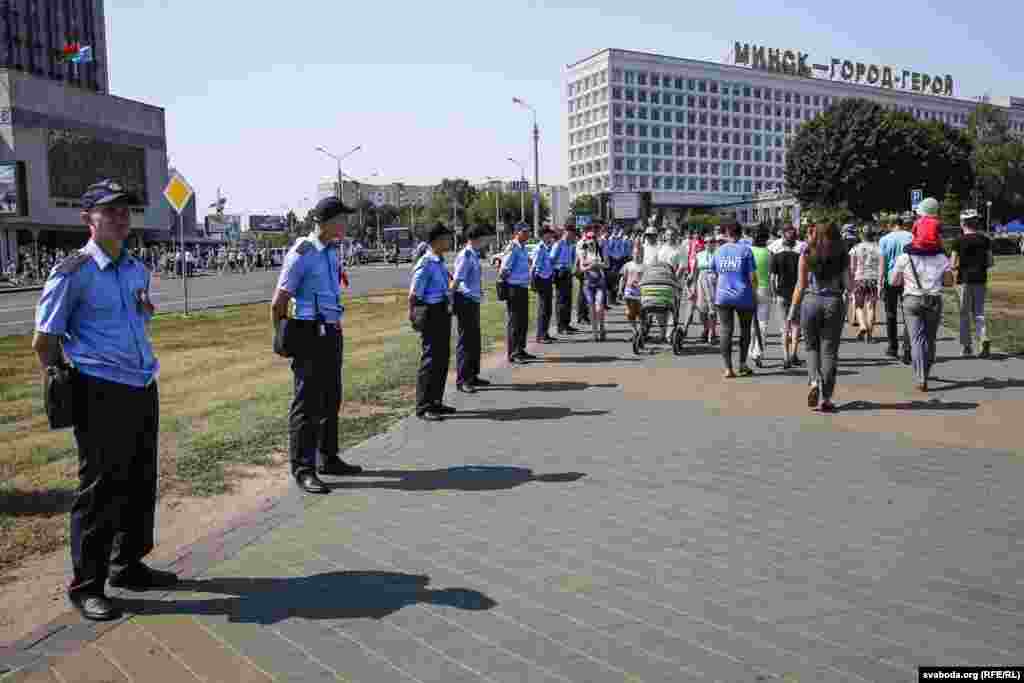 Уваход на парад толькі пра турнікеты. Побач з месцам правядзеньня вайсковага параду значная колькасьць супрацоўнікаў у цывільным.