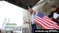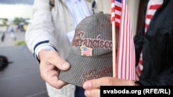 Напярэдадні яны заклікалі ў сацсетках прыйсьці да ратушы з амэрыканскімі сьцяжкамі і выказаць сваю пашану цудоўнай краіне і сябрам, якія жывуць там.