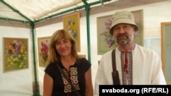 На сьвяце ў вышыванках былі ўкраінцы. Яны прапаноўвалі наведнікам набыць лялек, карціны ды выразаныя ў дрэве пано. Трымаліся госьці з Ўкраіны сьціпла.