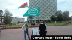 У суботу вечарам у адным з бараў на вуліцы Герцэна дыджэй вывесіў беларускі бел-чырвона-белы сьцяг.