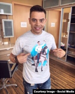 На фірмовых цішотках і сьцяжках Гроса, якія зрабіла дызайнэрка Наташа Аксіновіч, беларускі канкурсант выяўлены ў вобразе вершніка – князя Альгерда, помнік якому два гады таму ўсталявалі ў Віцебску. Праўда, замест вайсковага рыштунку – вышыванка, а ў руцэ ня сокал, а мікрафон, піша суполка symbal.by.