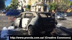 Гэтая машына належала кіраўніку «Ўкраінскай праўды» Алёне Прытуле, але яе ў машыне не было.