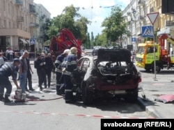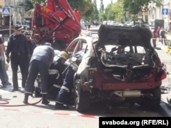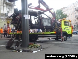 Паліцыянты і супрацоўнікі СБУ пры дапамозе пажарна-ратавальнай службы выразалі з машыны крэсла, на якім сядзеў Павал Шарамет у момант выбуху. Пасьля гэтага прыбіральнікі сабралі ўсе кавалкі аўтамабіля, раскіданыя выбухам, а сам аўтамабіль быў эвакуяваны.