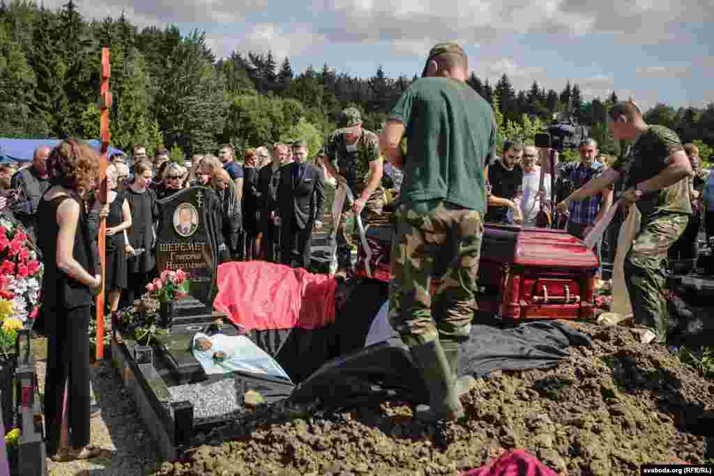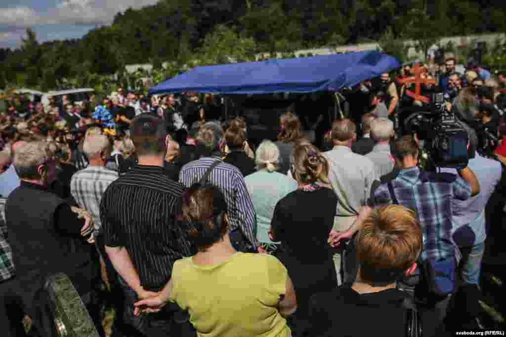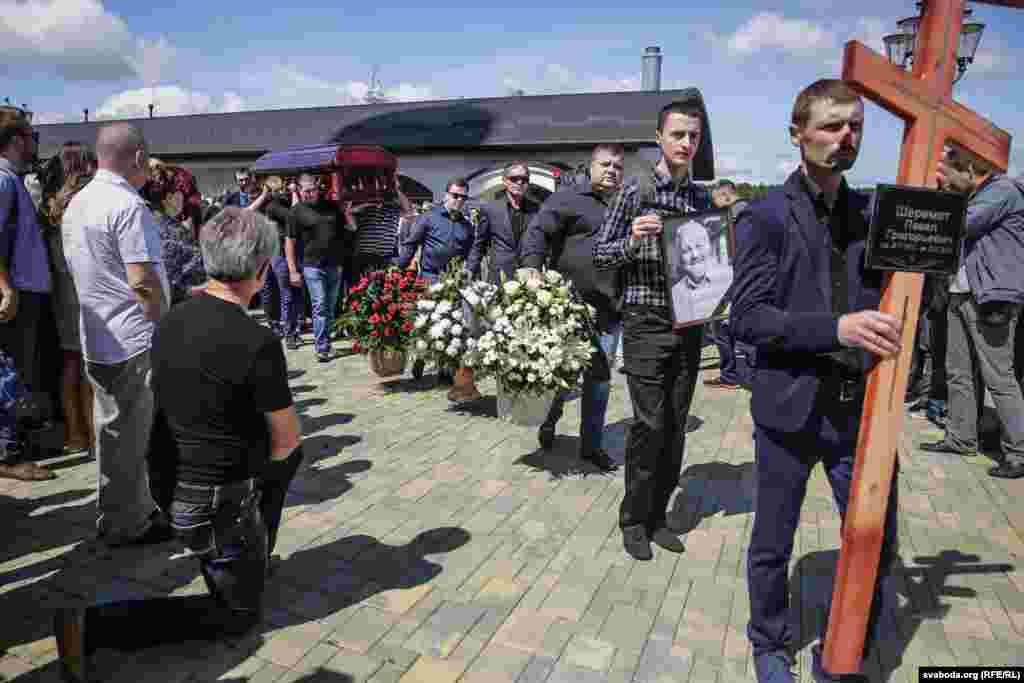 Цырымонія распачалася аб 11-й і будзе трываць да 14.00. Пахаваюць Паўла Шарамета на Паўночных могілках у 14:30.
