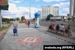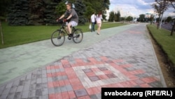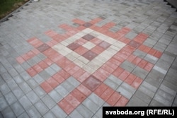 Пасьля рамонту на праспэкце Пераможцаў у Менску, на ходніку зьявіўся нацыянальны арнамэнт.