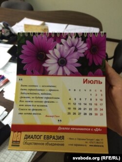 Супрацоўнік суседняга офіса паказаў карэспандэнтам Свабоды фірмовы каляндар, які яму падаравалі людзі з «Достлуку».