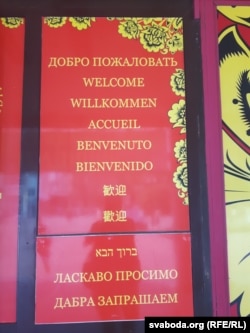 На галоўнай вуліцы Ніжняга Ноўгарада – Бальшой Пакроўскай я пабачыў гэты надпіс на беларускай быццам бы мове. На запрашальнай шыльдзе ў Ніжагародзкі музэй мастацкіх промыслаў.