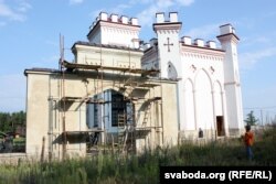 Васіль, брыгадзір на будоўлі, кажа, што працы вядуцца згодна з патрабаваньнямі ды тэхналёгіямі XIX стагодзьдзя, калі і быў пабудаваны палац: