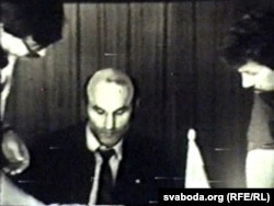 Дыскусія. Дэпутаты Апазыцыі БНФ у чарзе да мікрафона. Справа налева – Лявонці Зданевіч, Валянцін Голубеў, Алег Трусаў. (Кінакадр)